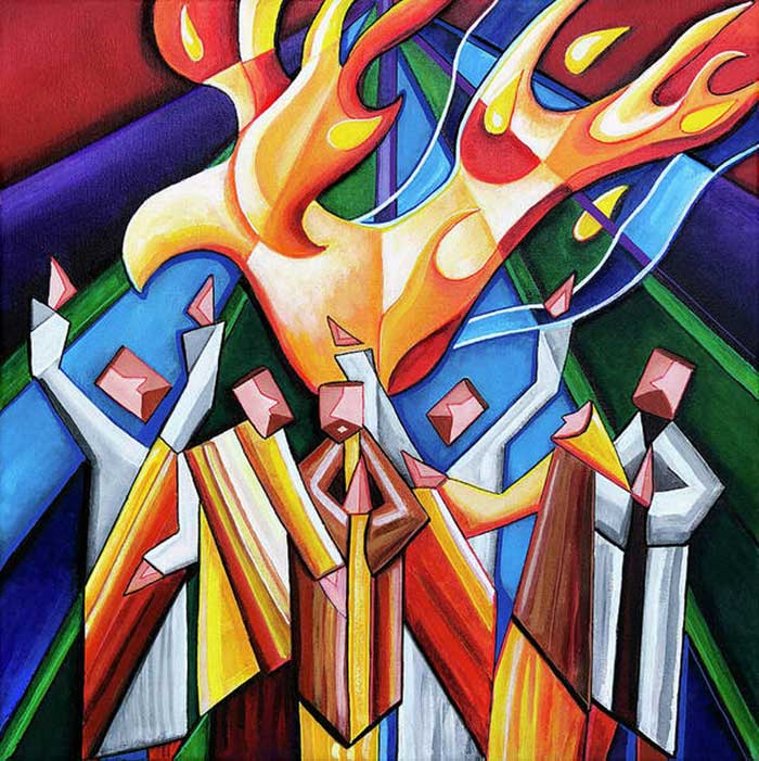 Pentecost is the name of the day when the Holy Spirit came to the Early Church, depicted in Acts 2:1-17. Many churches remember and celebrate this on Pentecost Sunday, seven weeks after Easter Sunday.