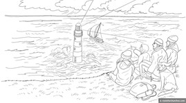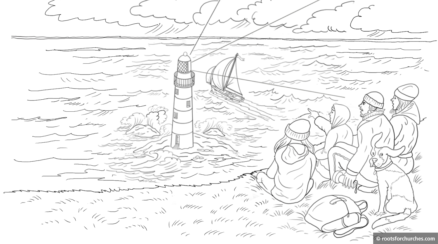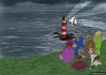 Father & child sunset; storybook; lighthouse; lighthouse bw; donations box